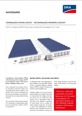Centralized or decentralized? This is the question that planners of large solar systems ask themselves when it comes to the design of a PV system. After all, the solar yields and the profitability of the PV power plant depend on it. What factors should planners of large solar systems therefore take into account when planning the installation, and what role does the subsequent service concept for the PV system play? A new whitepaper provides answers and a basis for decision-making.