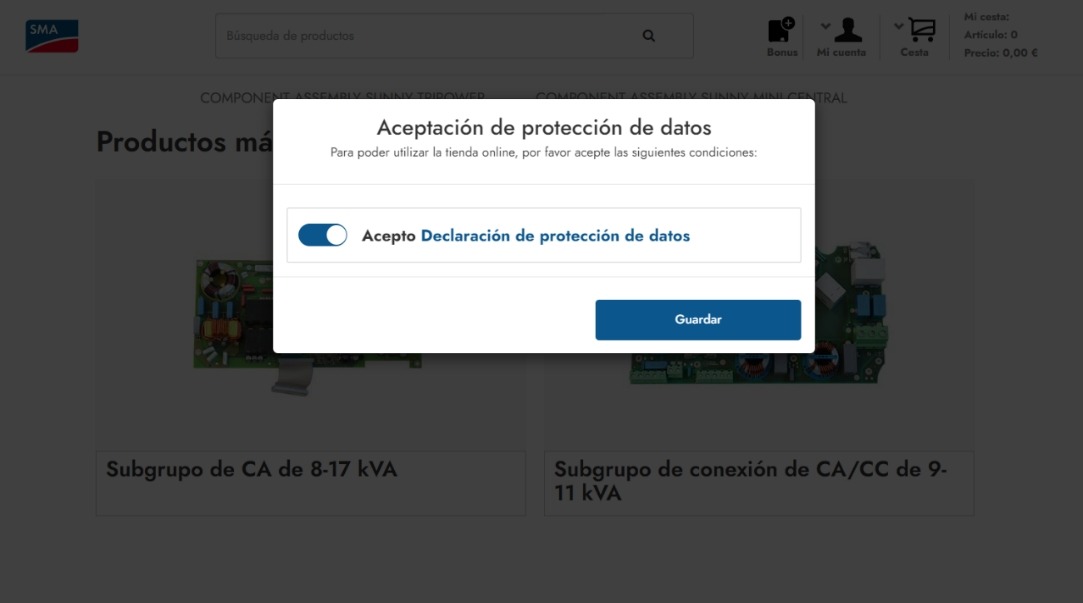 En este punto, deberás clicar en el botón de configurar la clave y, a través de la online shop de SMA, podrás acceder al portal del bonus