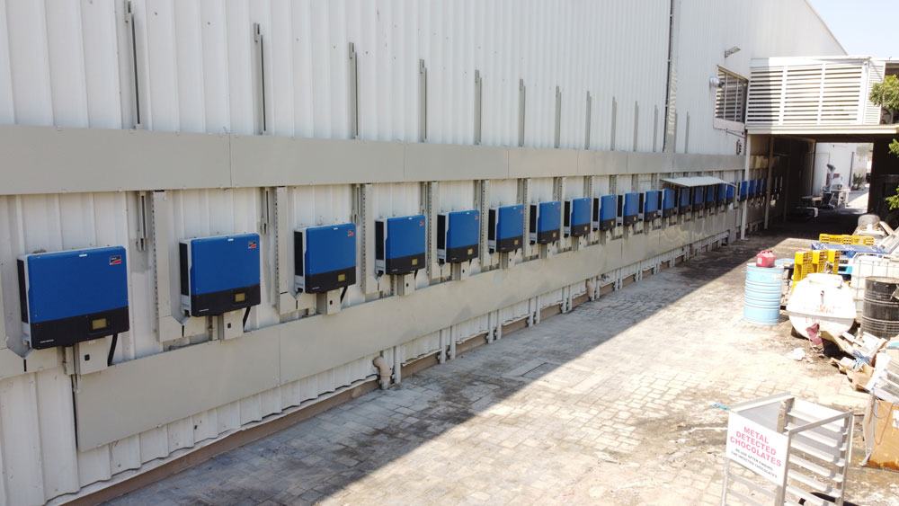 Die Fabrik verarbeitet täglich fünf Tonnen Schokolade zu den 10 bis 16 Gramm großen Schokopralinen. Eine Solaranlage auf dem Dach mit 650 Kilowatt Peak Leistung erzeugt jährlichen 950 Megawattstunden Sonnenstrom und deckt damit rund 70 Prozent des Energiebedarfs der Produktion. Die 23 Sunny Tripower 25000TL-30 und der SMA Cluster Controller sorgen dafür, dass der wertvolle Sonnenstrom zu 100 Prozent in der Fertigung genutzt werden kann.